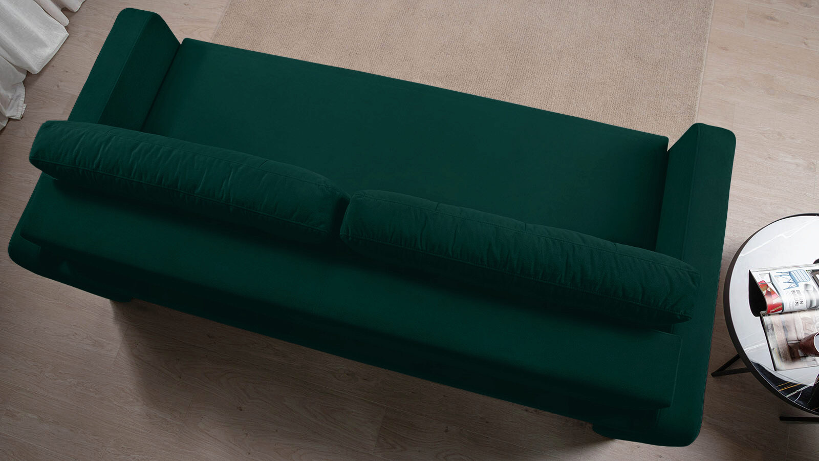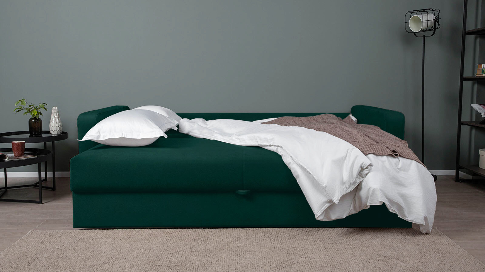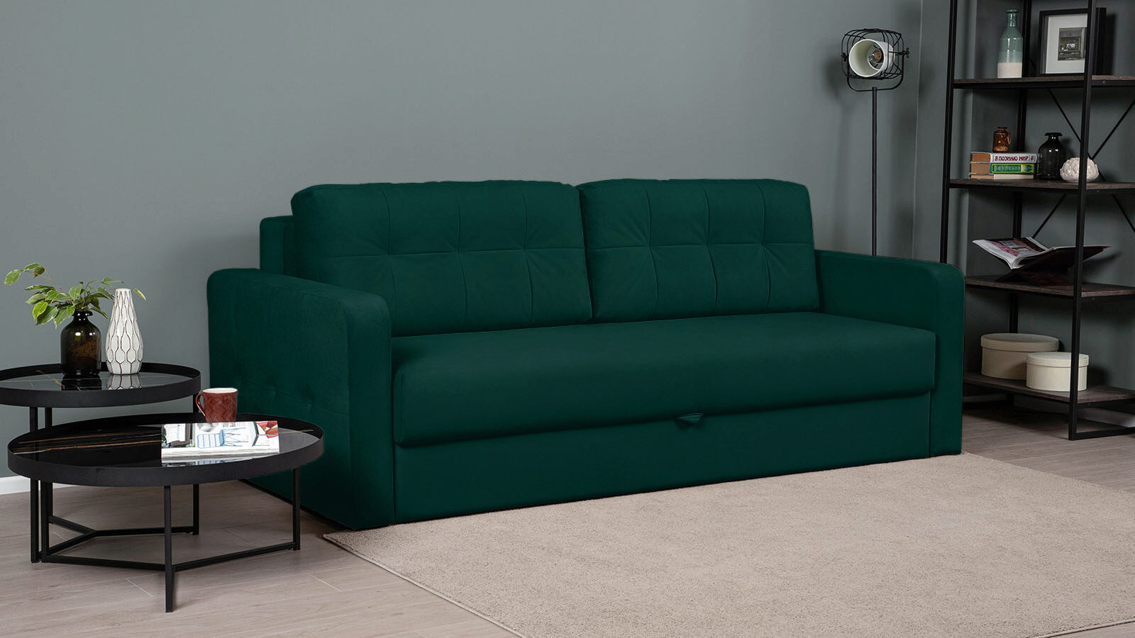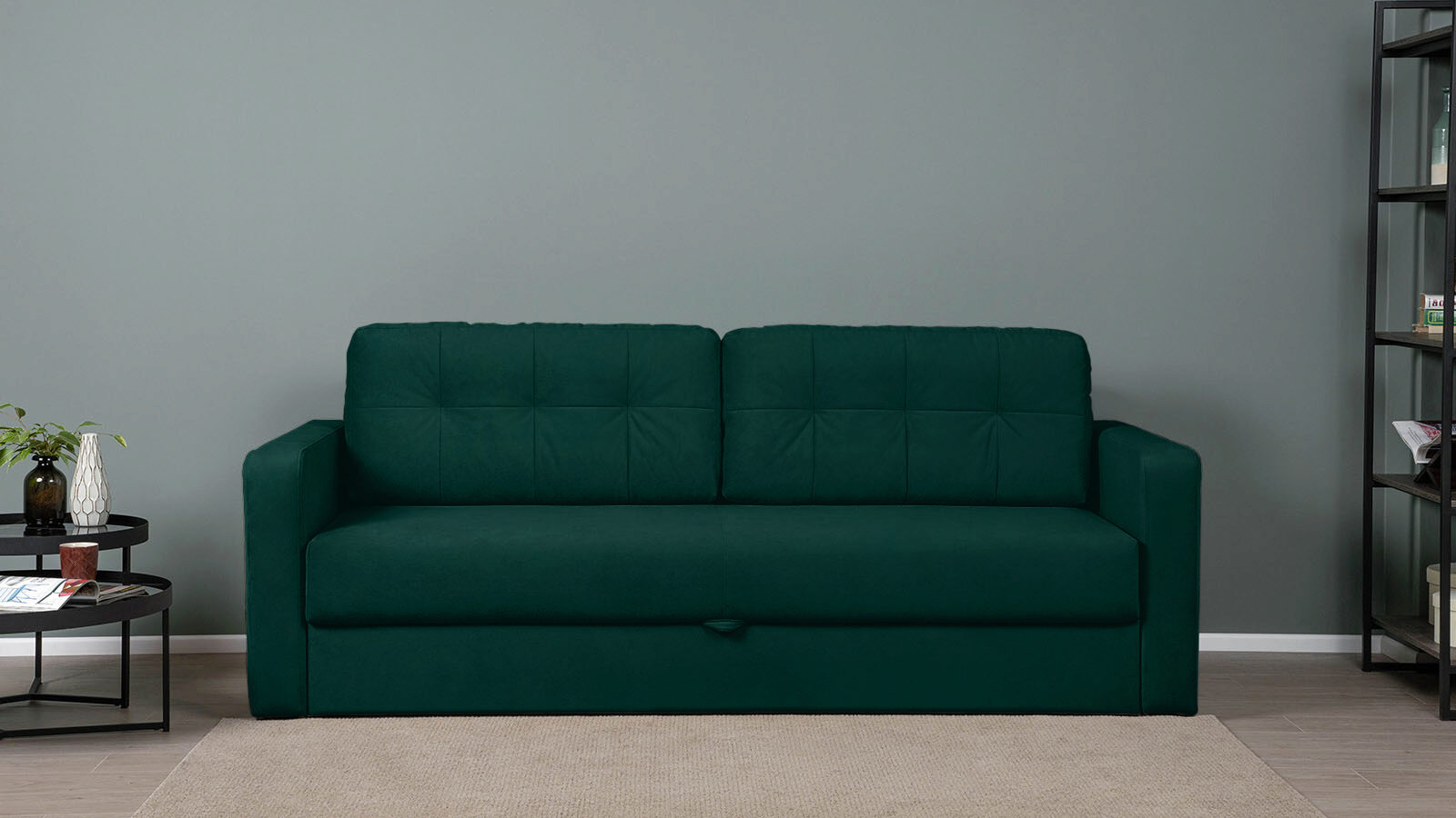 Упругая посадка достигается благодаря прочной металлической раме с пружинами ZigZag, а спальное место размером 200×163 см — как у полноценной кровати — подходит для ежедневного сна.