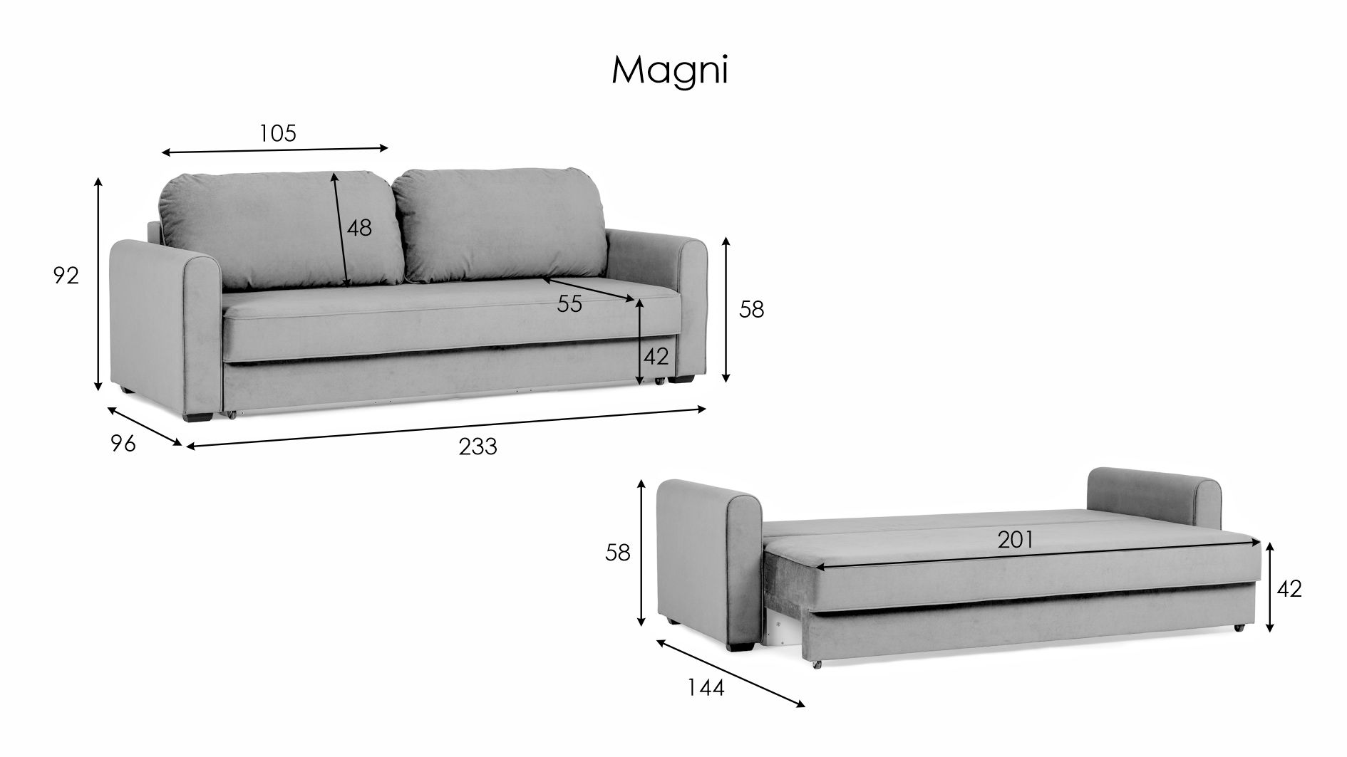 Диван-кровать Магни подойдет для гостиной, небольших квартир, гостиных-студий и спальных зон с ограниченным пространством. Рекомендуется для ежедневного использования благодаря комфортной системе поддержки и долговечной основе.