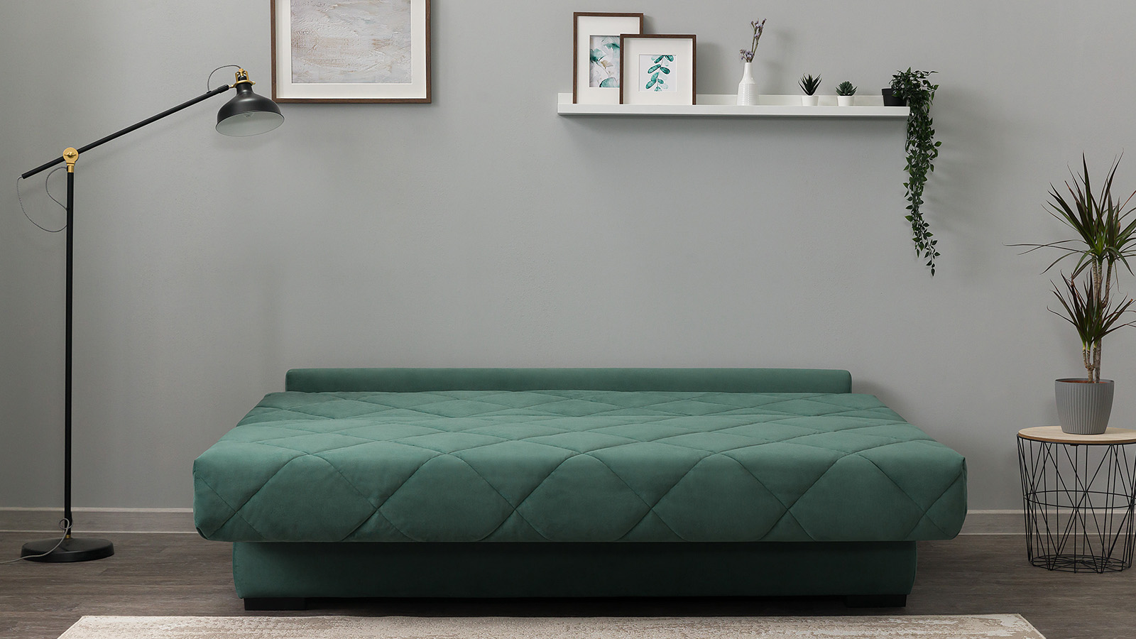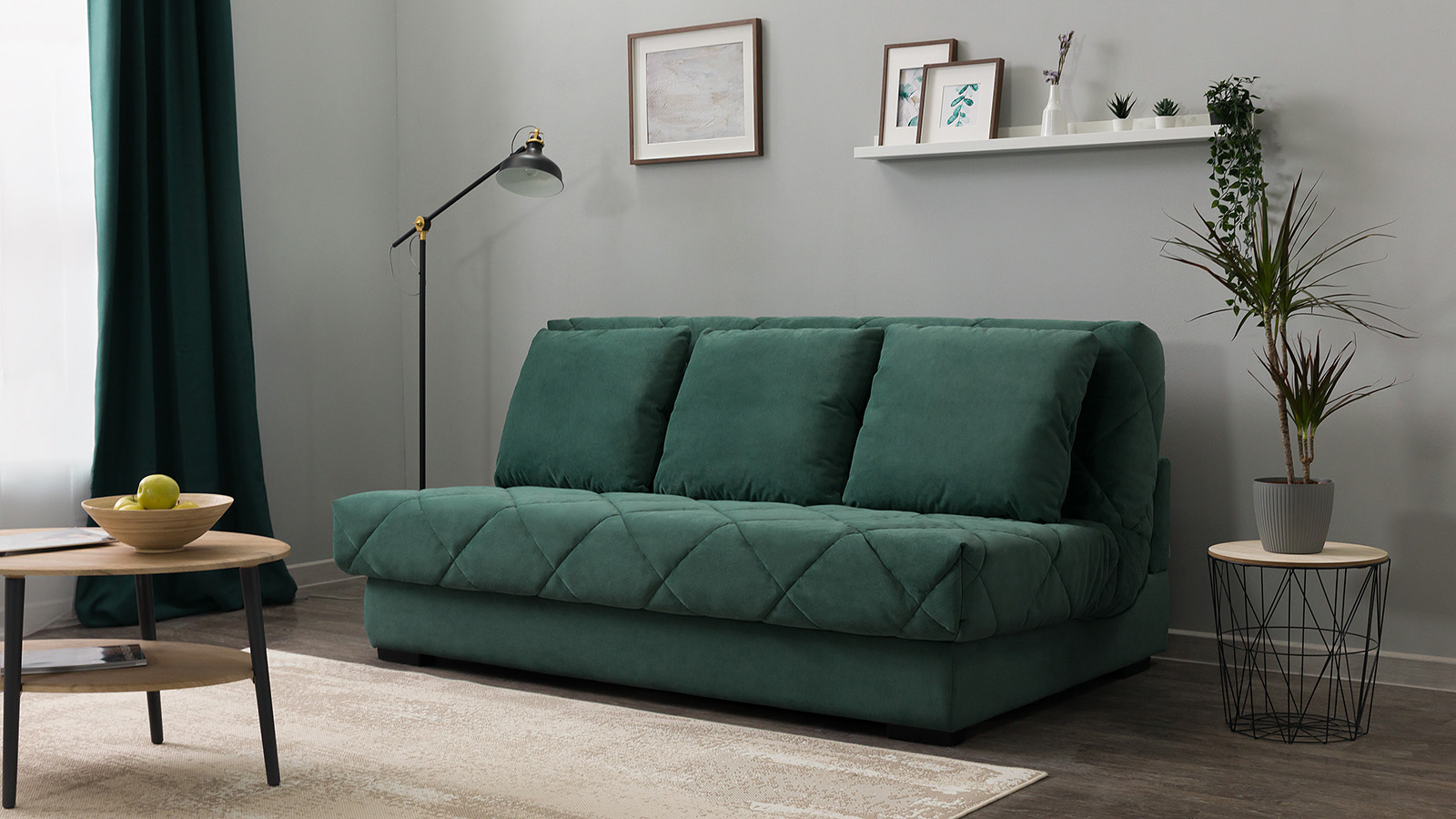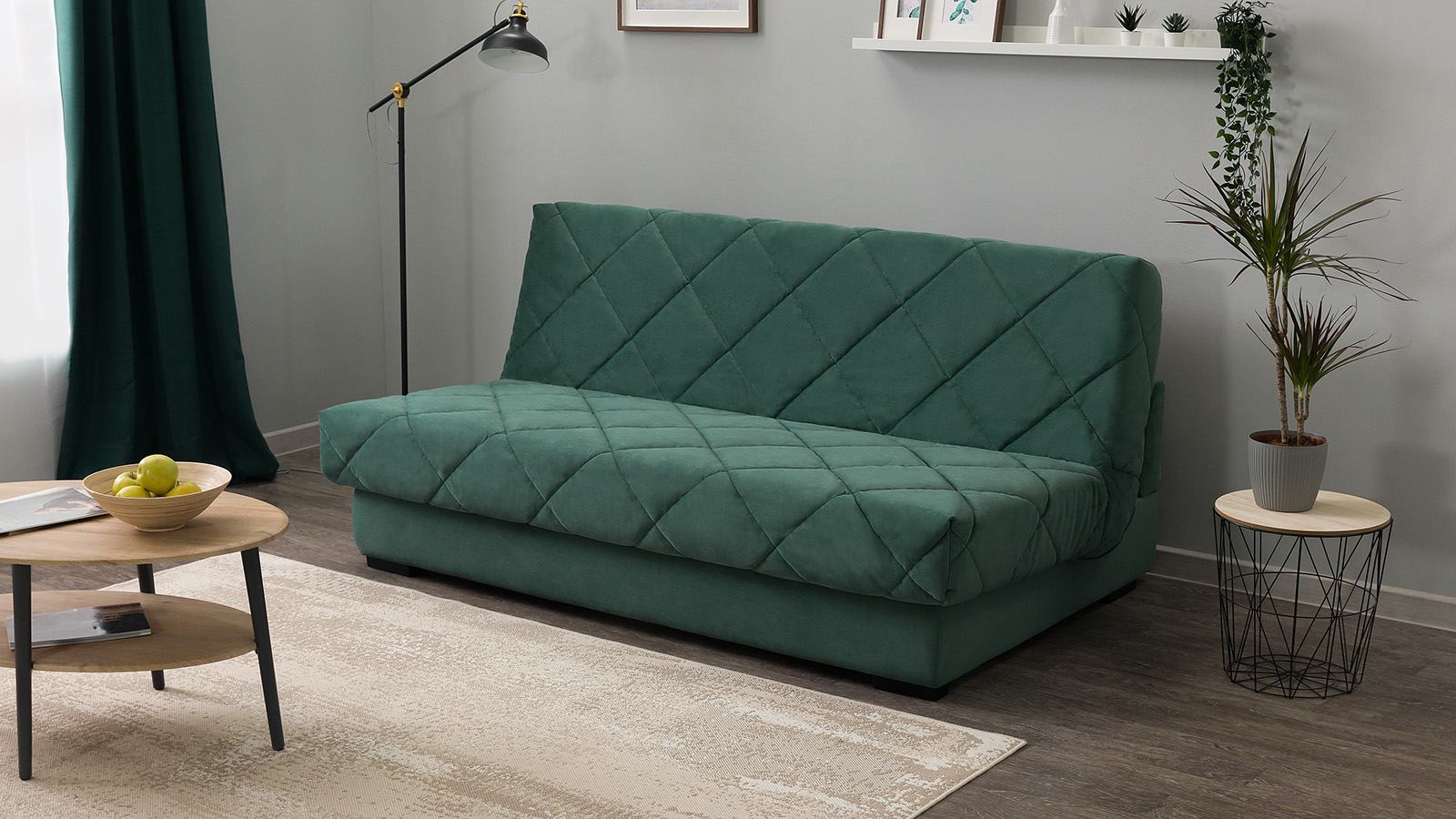 Анатомический диван Vega Nova с механизмом трансформации «Еврософа» (Removal) — без подлокотников. Задняя спинка — из обивочного материала, модель актуальна для малогабаритных квартир и квартир-студий.