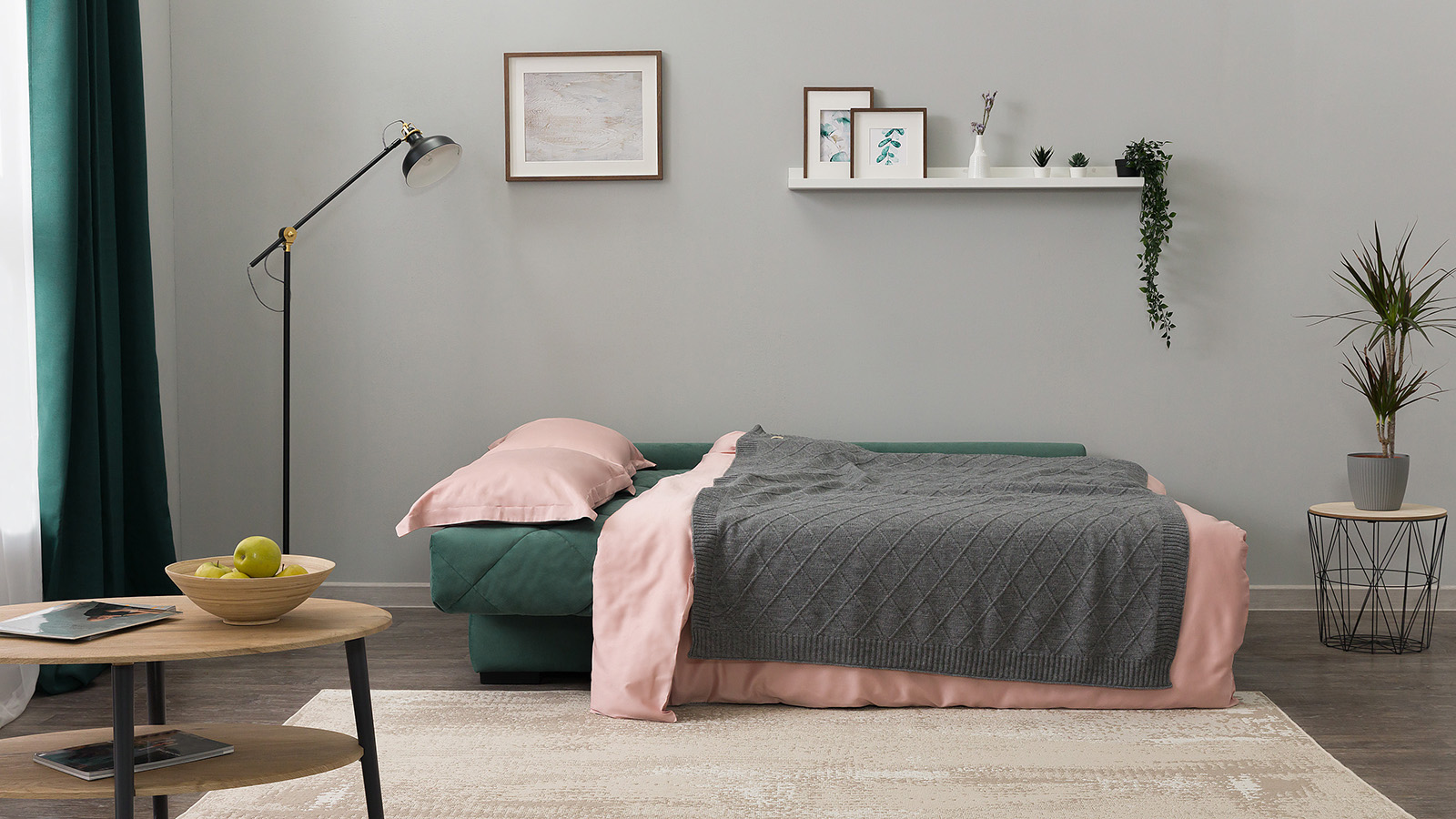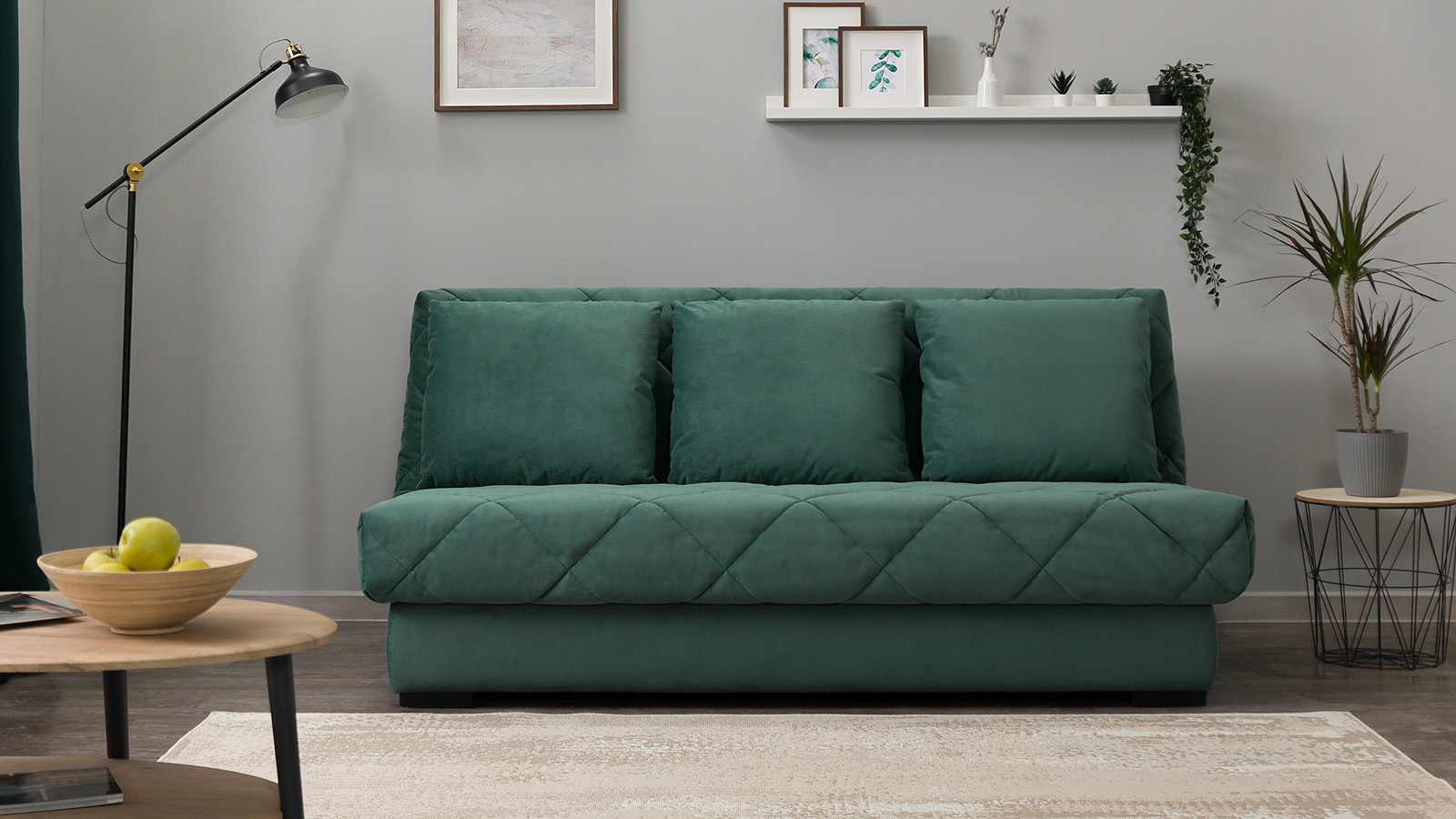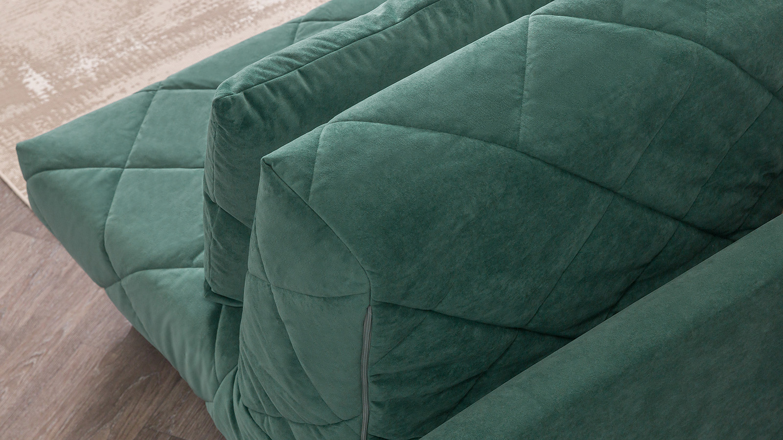 Анатомический диван Vega Nova с механизмом трансформации «Еврософа» (Removal) — без подлокотников. Задняя спинка — из обивочного материала, модель актуальна для малогабаритных квартир и квартир-студий.