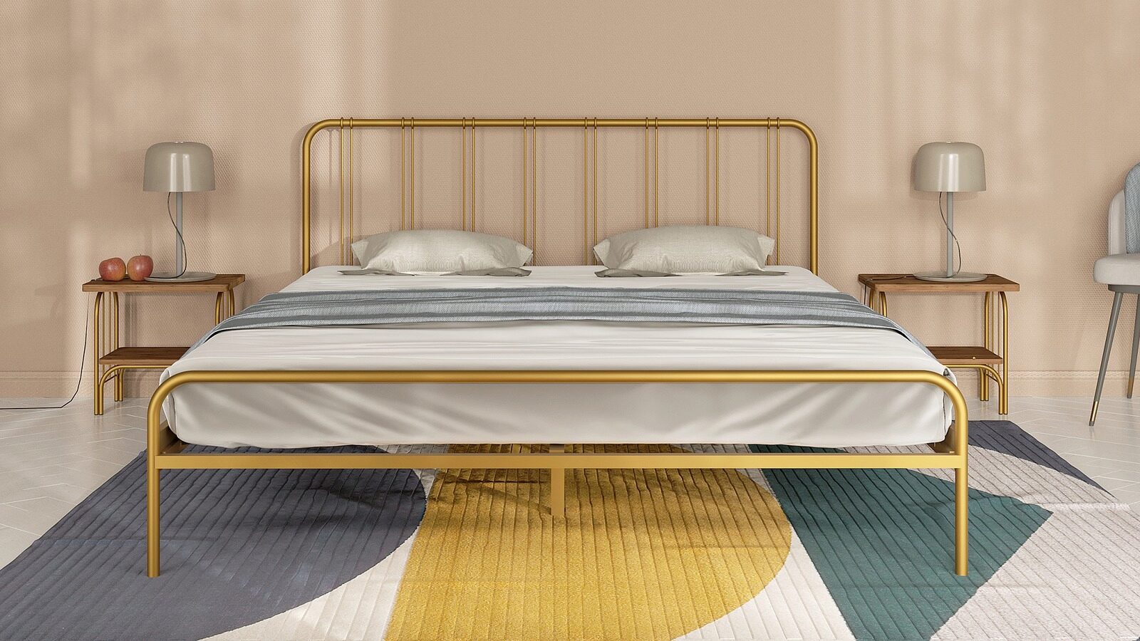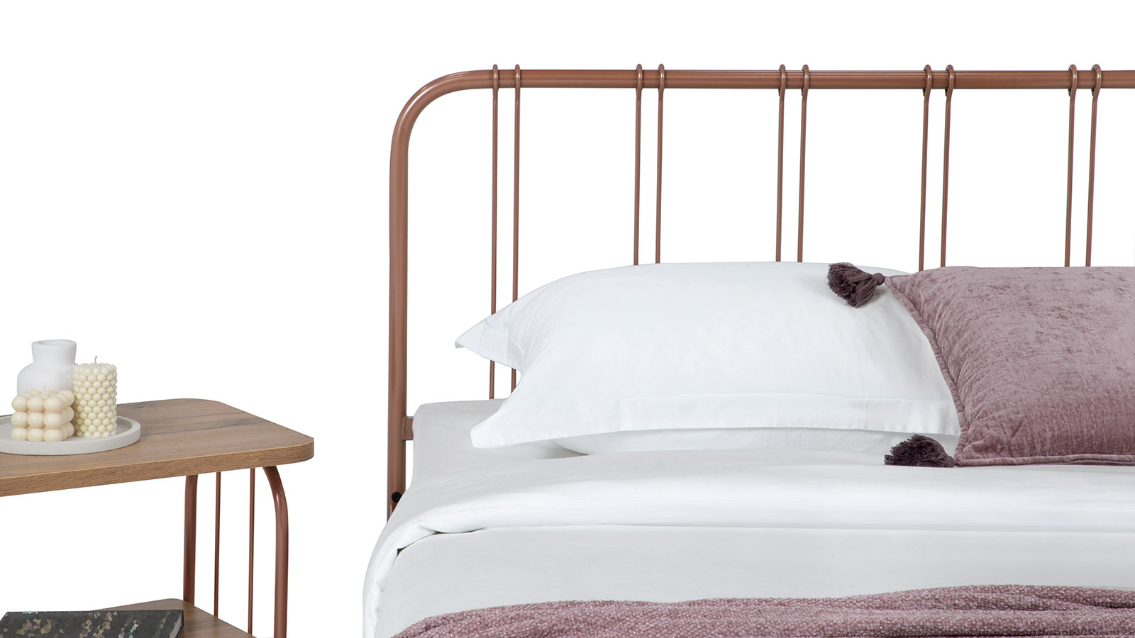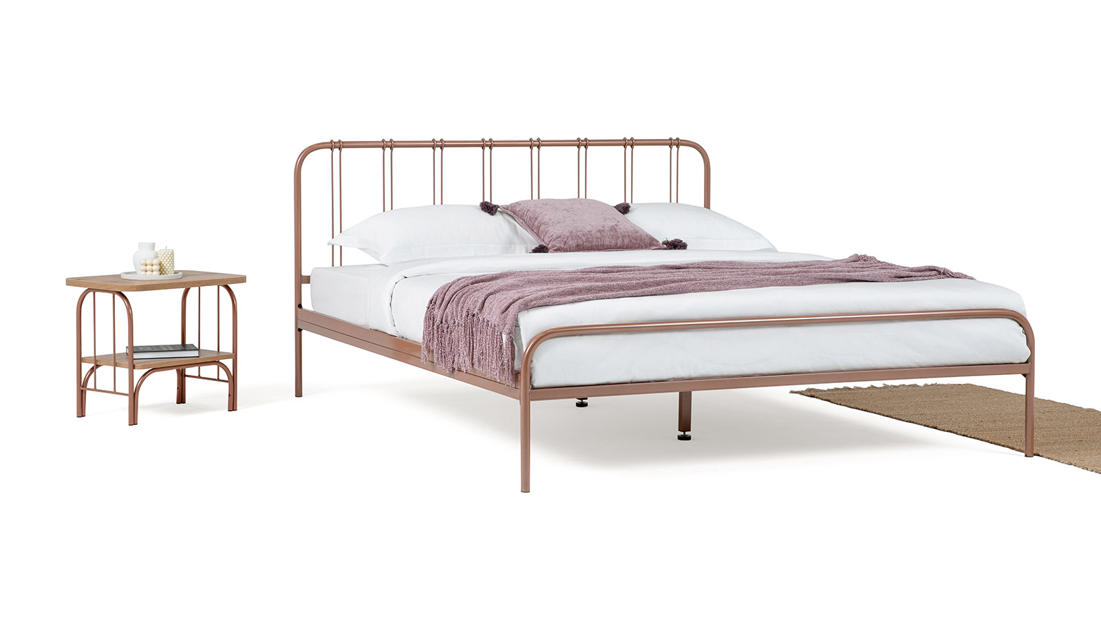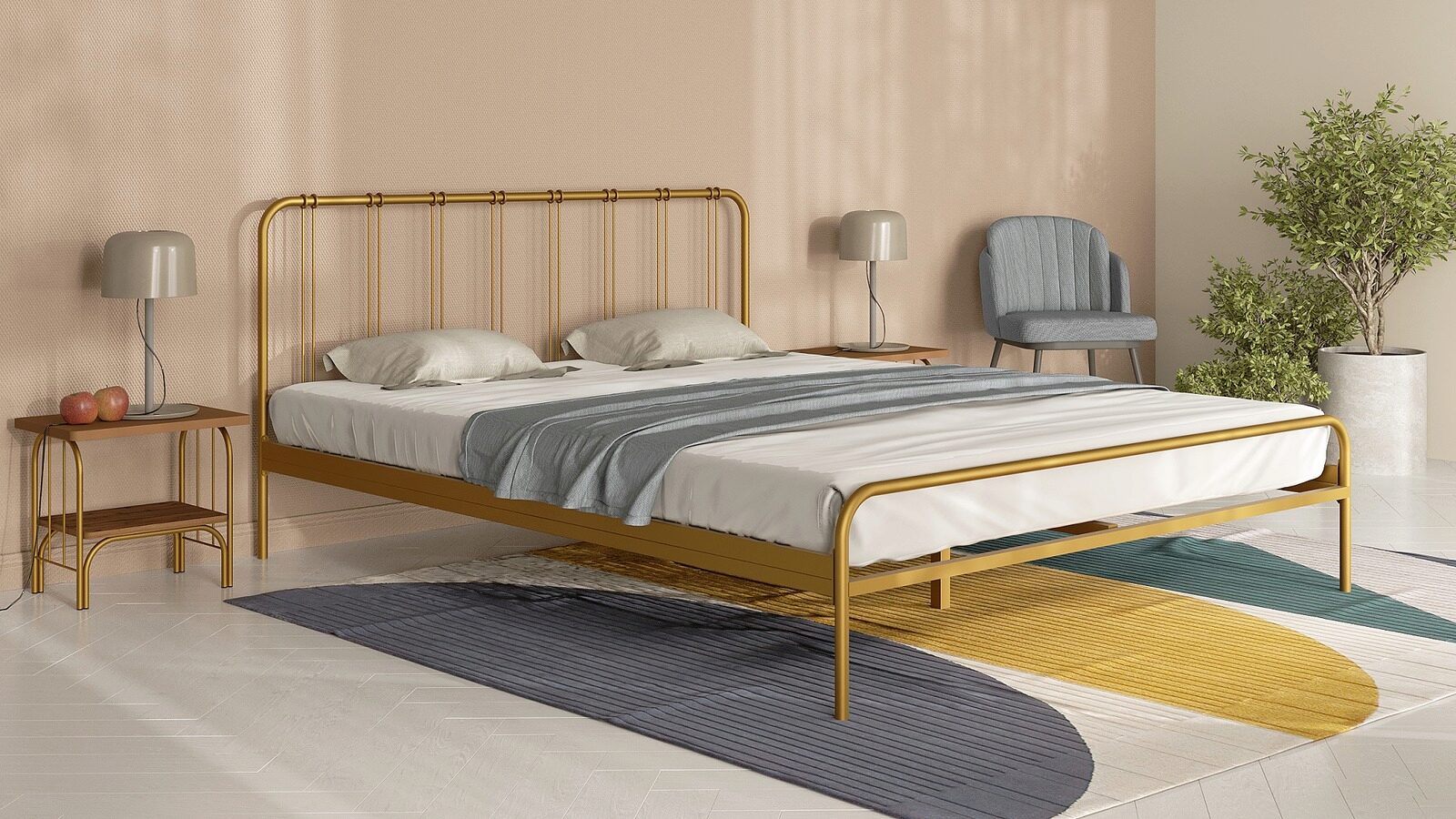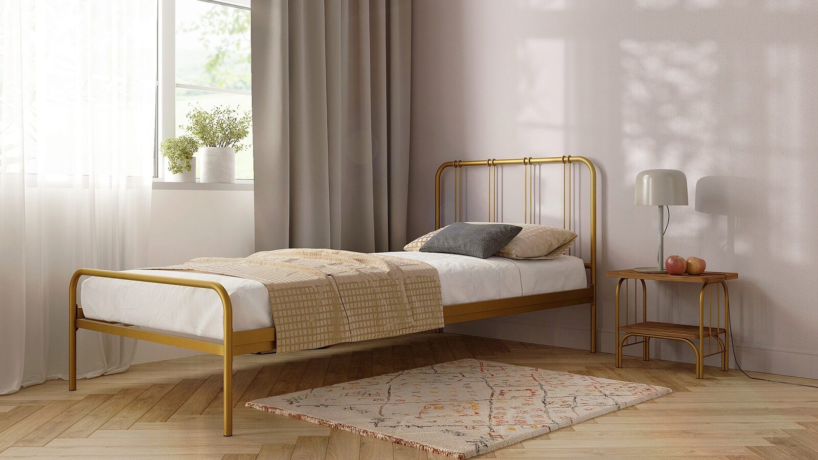 Металлическая прикроватная тумба Arfa, в таком же стиле, что и сама кровать поможет сделать интерьер более завершенным.