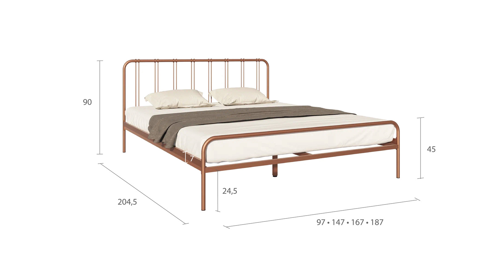Металлическая кровать Antica выполнена в изысканной матовой бронзе. Лаконичная спинка кровати создает атмосферу утонченности и комфорта.