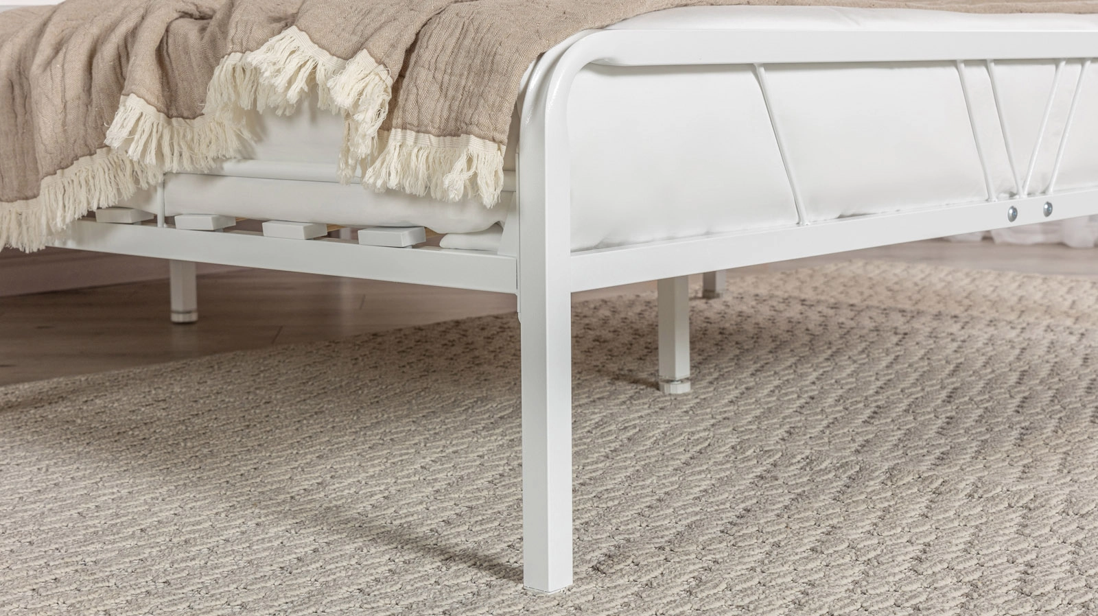 - высокая прочность и устойчивость: каркас кровати усилен 4 дополнительными металлическими опорами – 2 на центральной царге и по 1 на боковых;