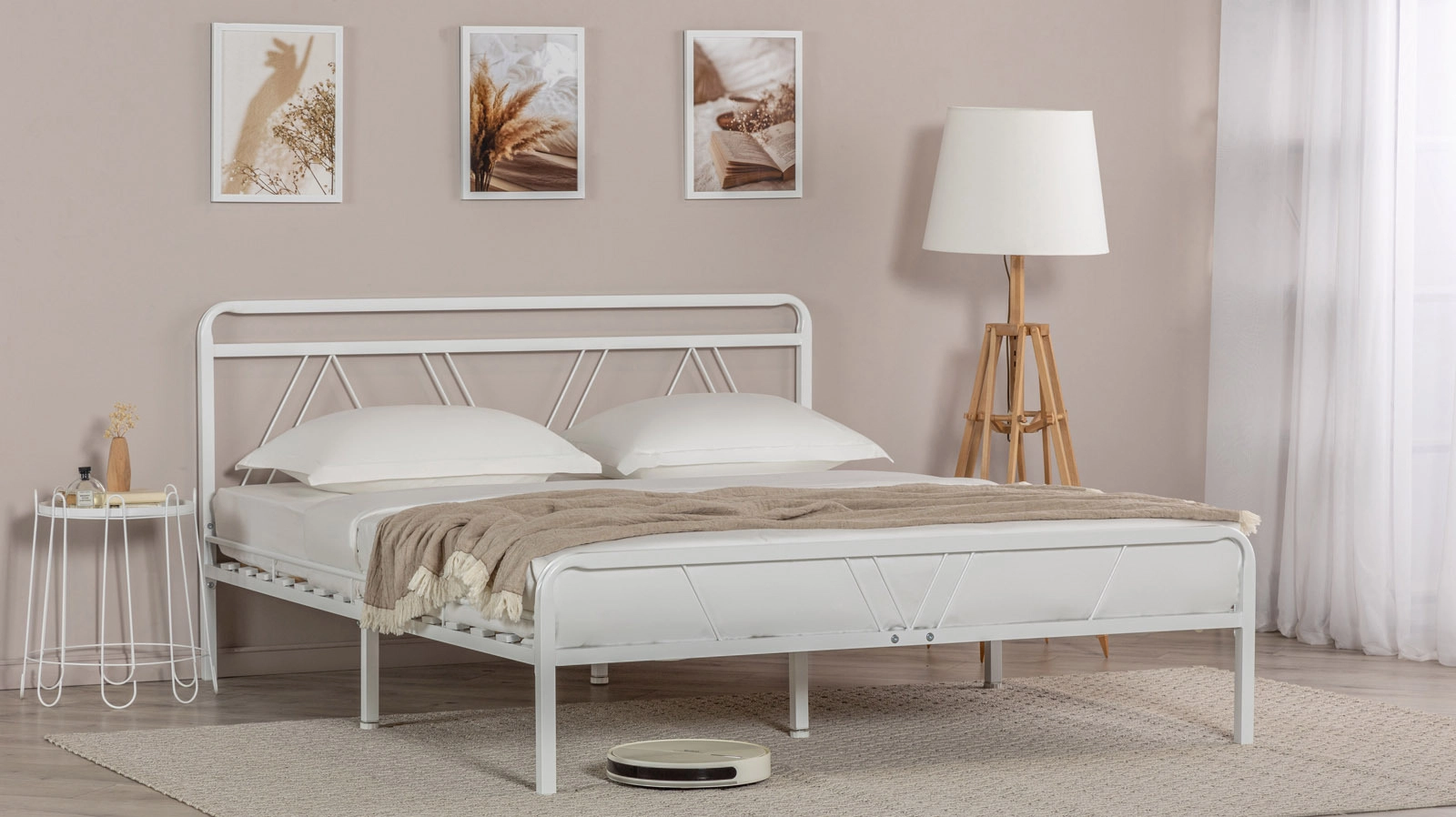 - готовое интерьерное решение вместе с прикроватными тумбами Askona из металла, ЛДСП или массива.