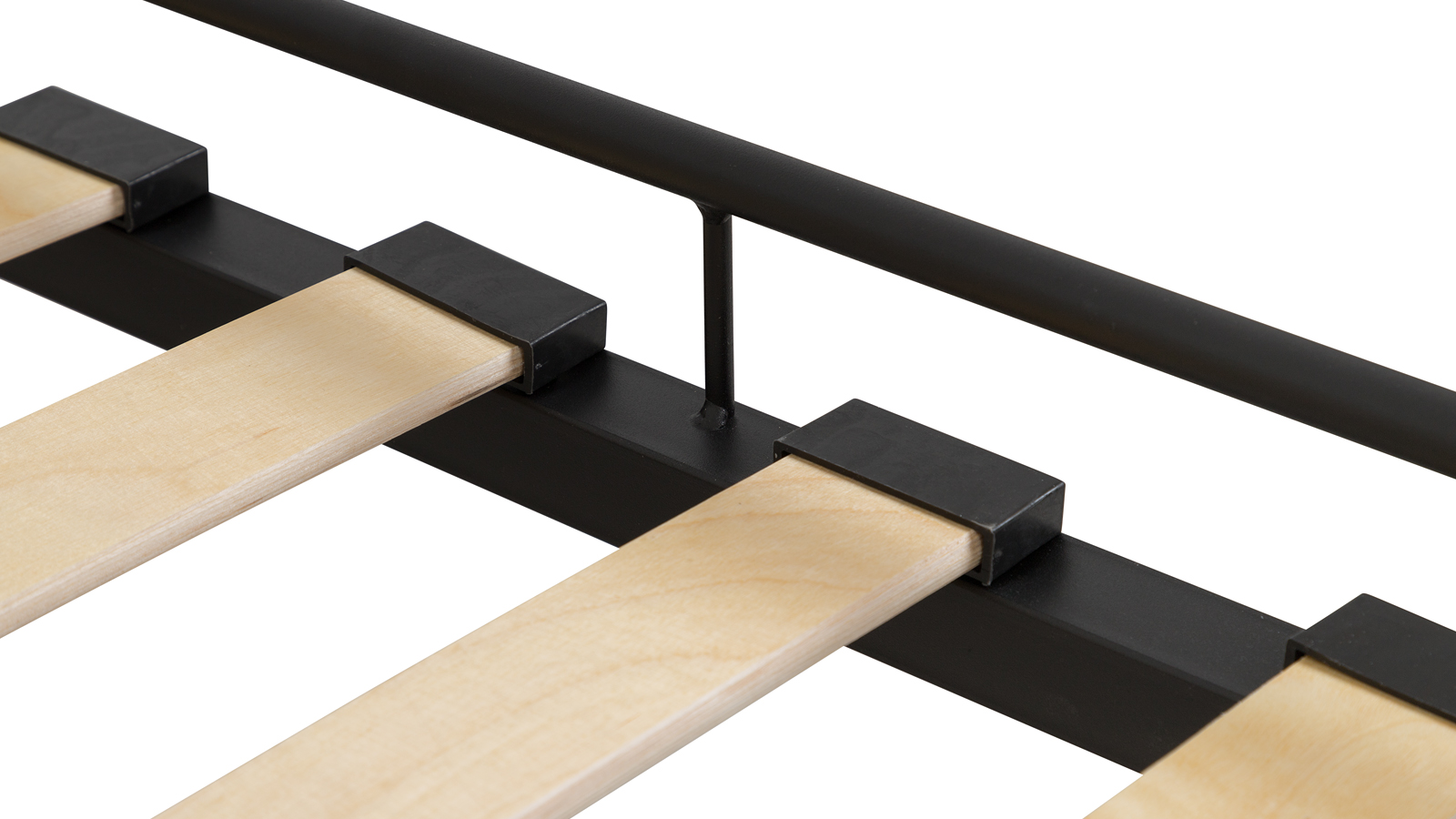 - высокие прочность и устойчивость: каркас кровати усилен 4 дополнительными металлическими опорами – 2 на центральной царге и по 1 на боковых;
