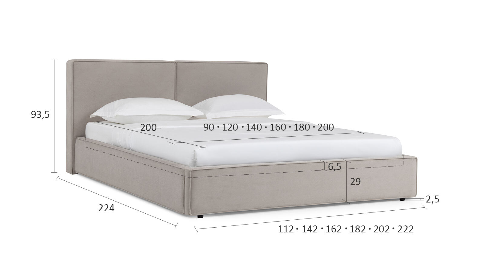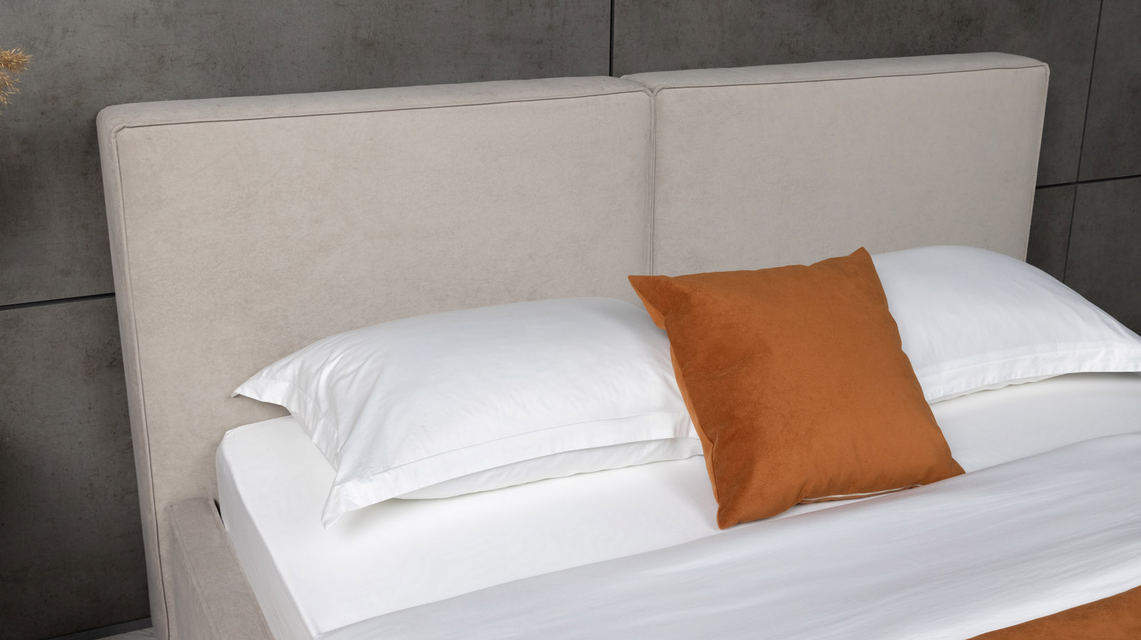 Кровать Murrey Nova отражает лучшие современные тренды дизайна. Мягкое объемное изголовье в виде подушек, стильные декоративные защипы и правильная геометрия.