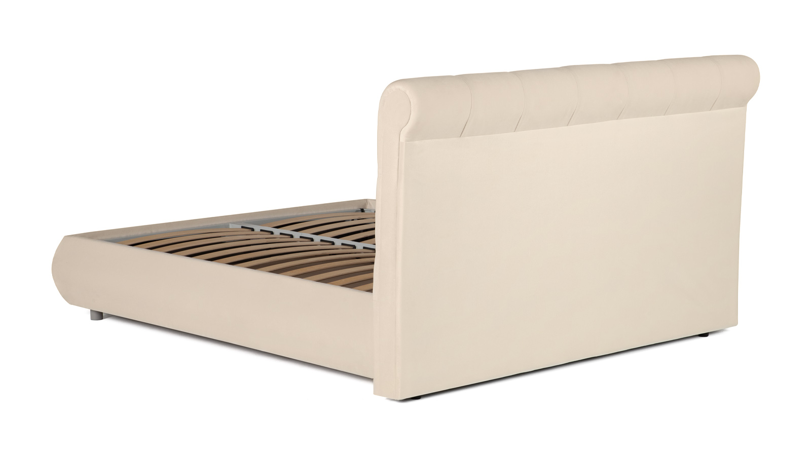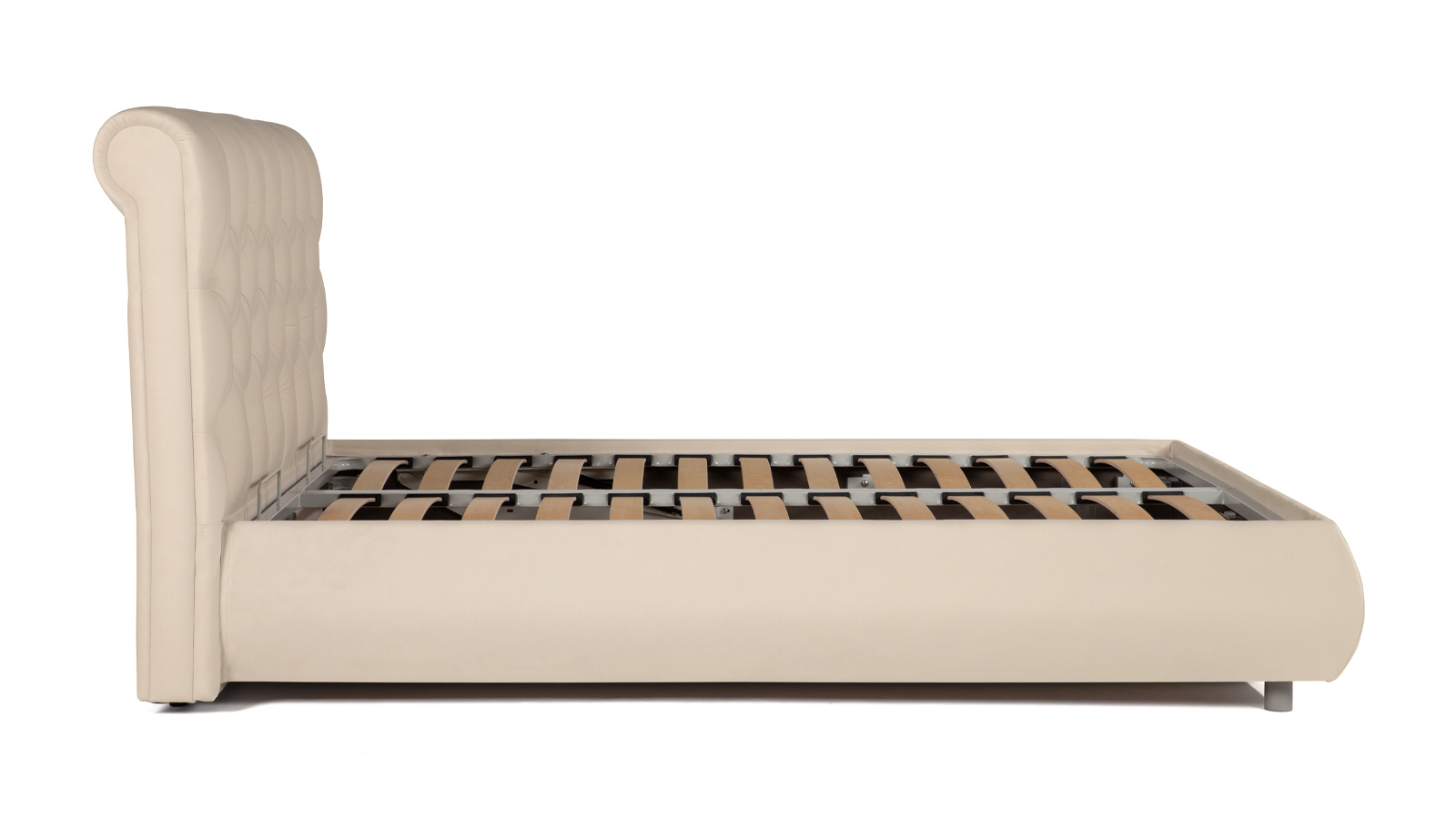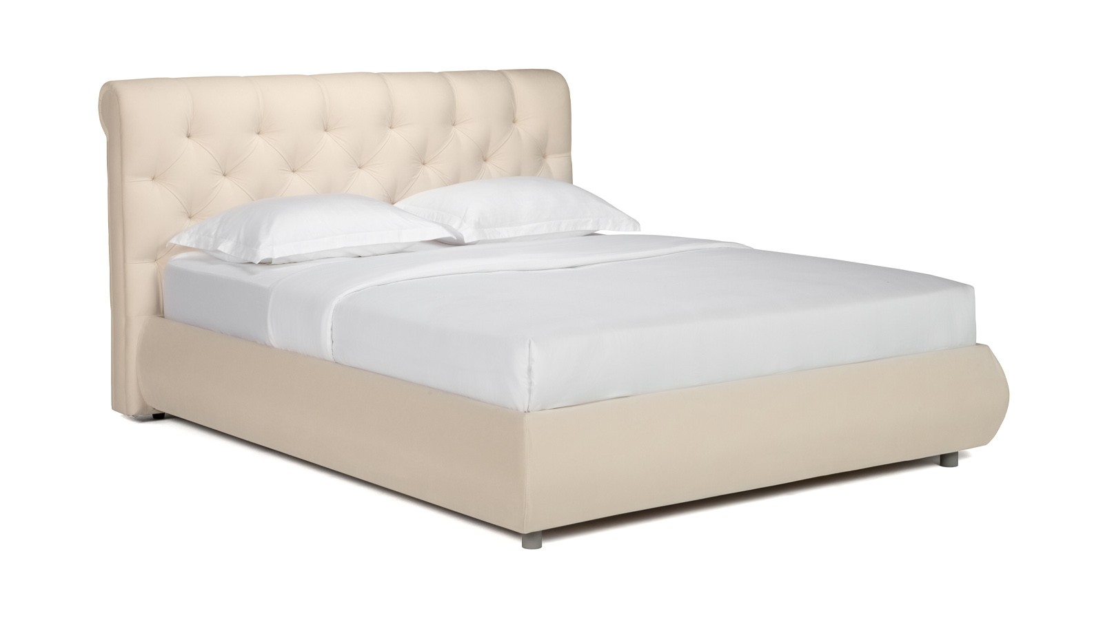 Закругленное изголовье с каретной стяжкой – в стиле европейской классики 18 века, традиционно символизирует роскошь и достаток. Ромбовидная утяжка и складки материала выглядят изысканно.