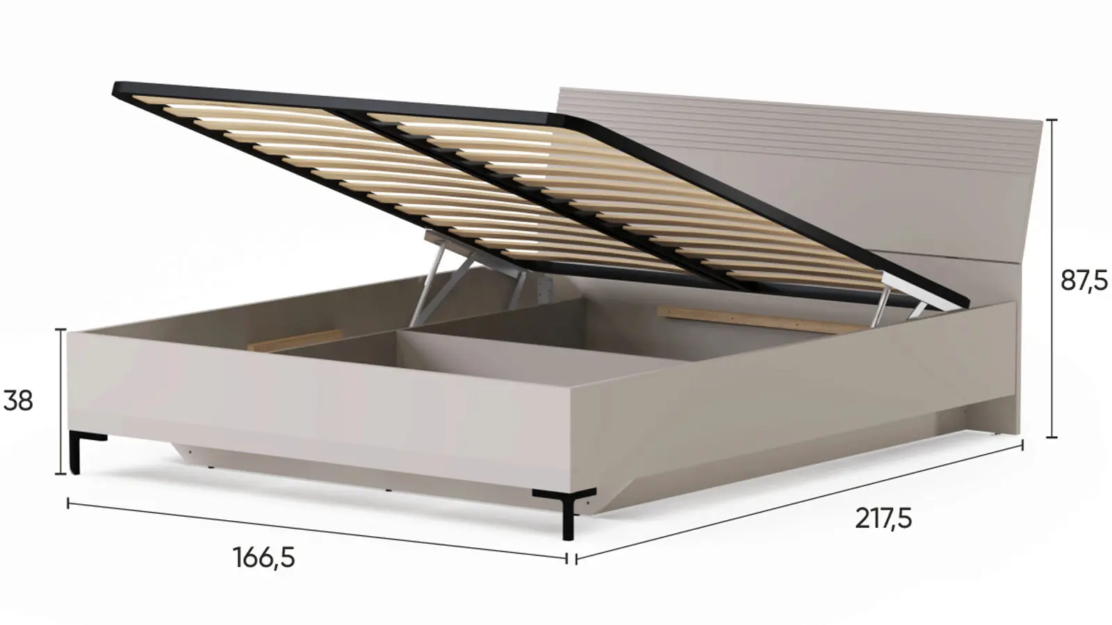 Кровать с подъёмным механизмом и просторным ящиком для белья отлично впишется в любой современный интерьер.