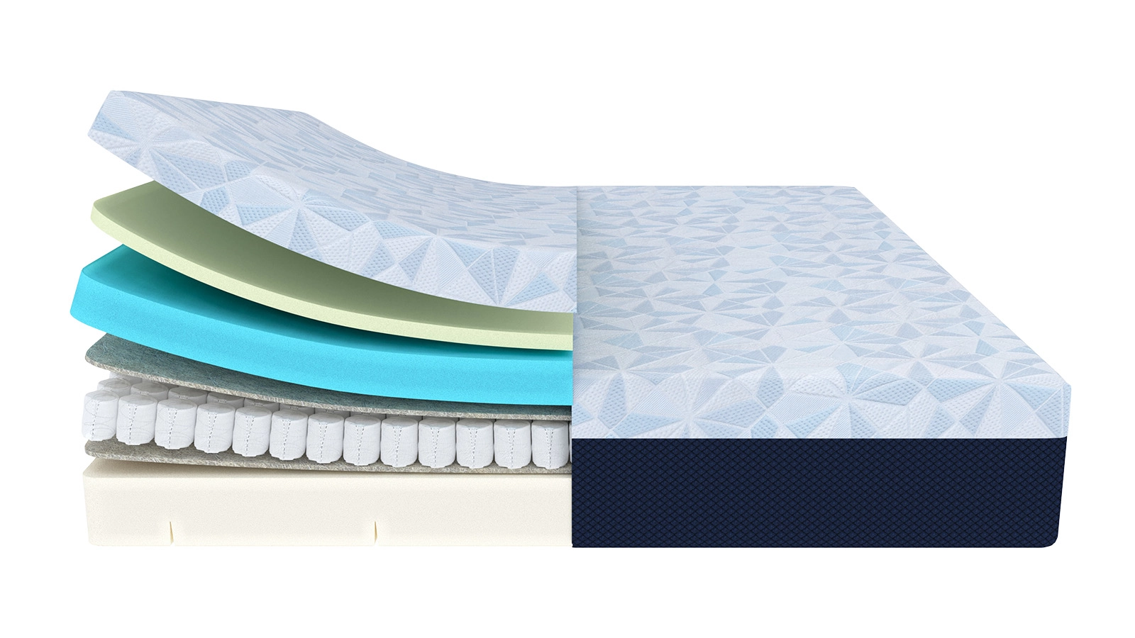 - Охлаждающая ткань с дизайном в виде кристаллов — сохраняет прохладу и комфорт всю ночь.