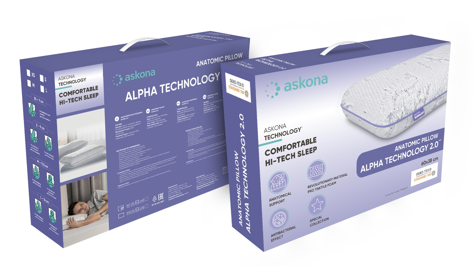 Анатомическая подушка Alpha 2.0 серии Technology выполнена из пены ProTaktile. Идеально принимает форму головы и поддерживает шею в правильном положении во время сна. Обладает эффектом терморегуляции, пропускает воздух, охлаждает.