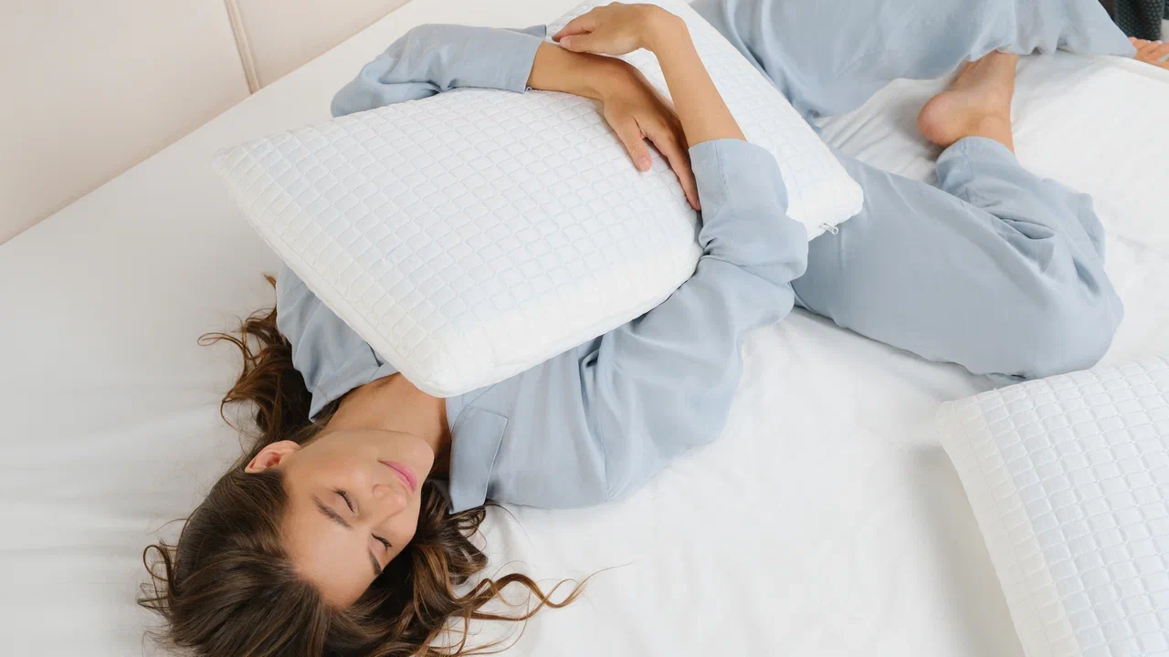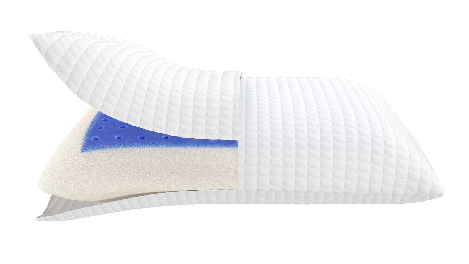 Анатомическая подушка с разными сторонами: пена с памятью формы с одной стороны и охлаждающий гель — с другой.