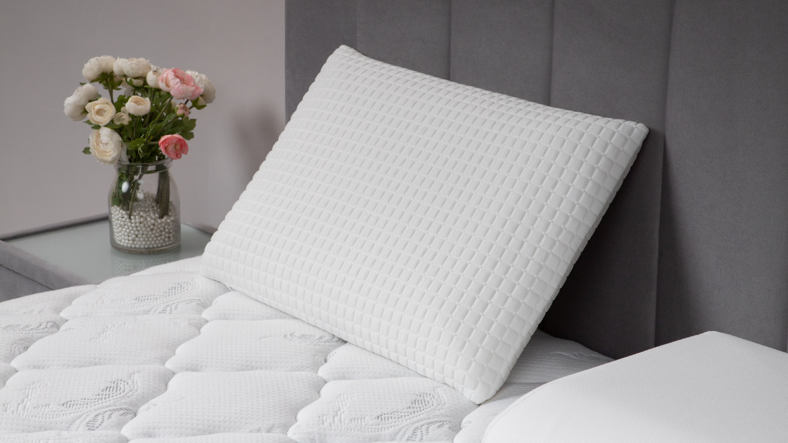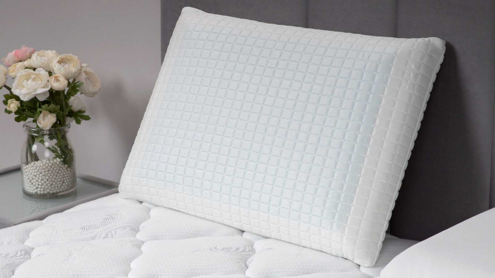 Подушка также имеет двухсторонний чехол, одна сторона которого регулирует температуру, сохраняя прохладу. Пена с эффектом памяти обеспечит упругость. Отличный выбор для сна на боку и на спине.